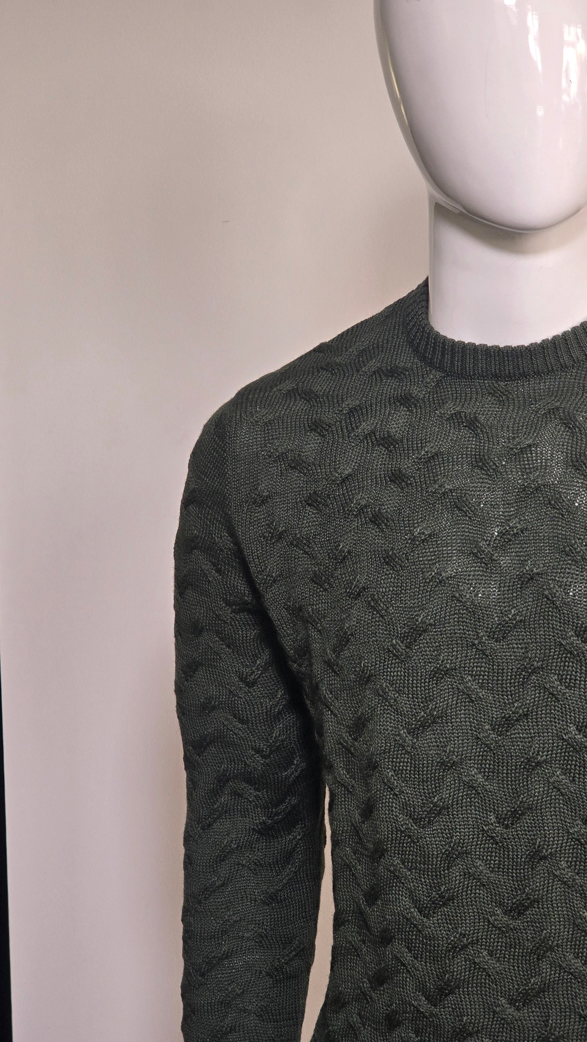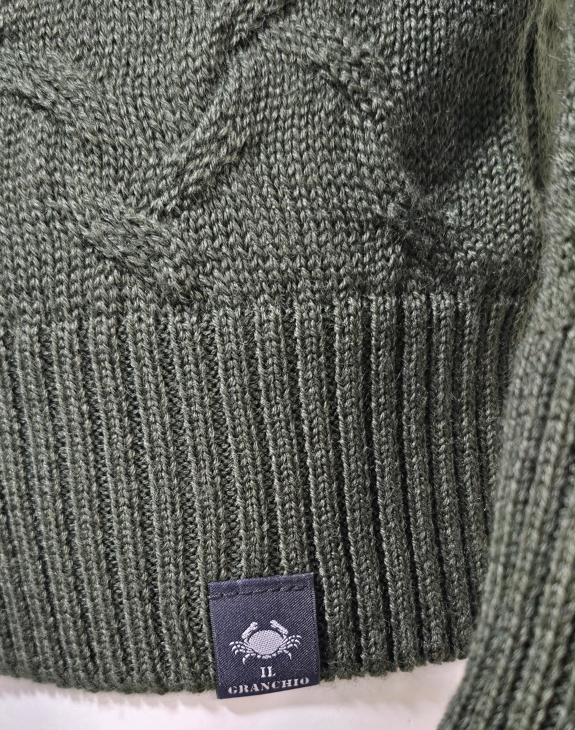 Stile e comfort si incontrano in questo maglione Il Granchio a girocollo con elegante lavorazione intrecciata in rilievo.