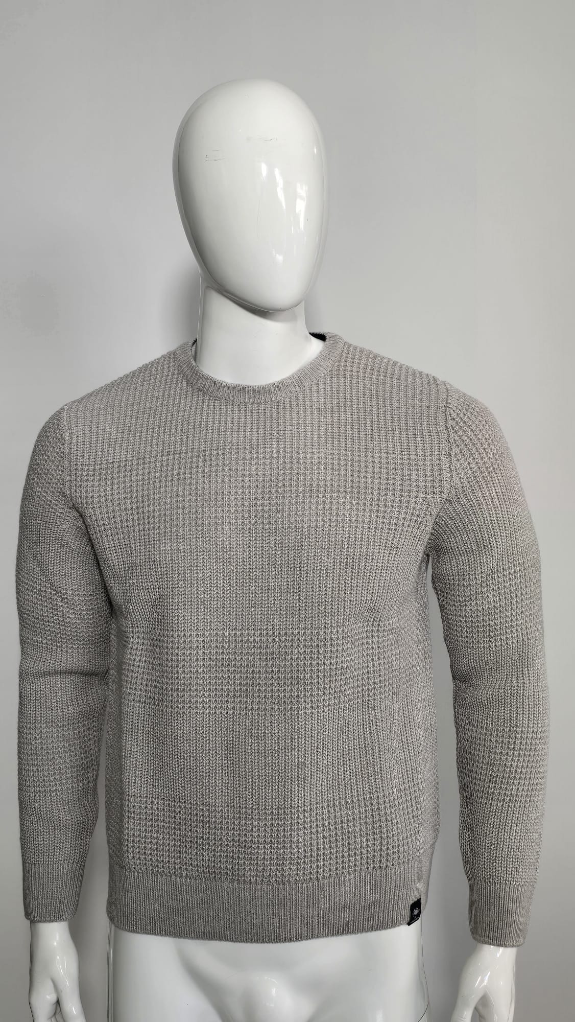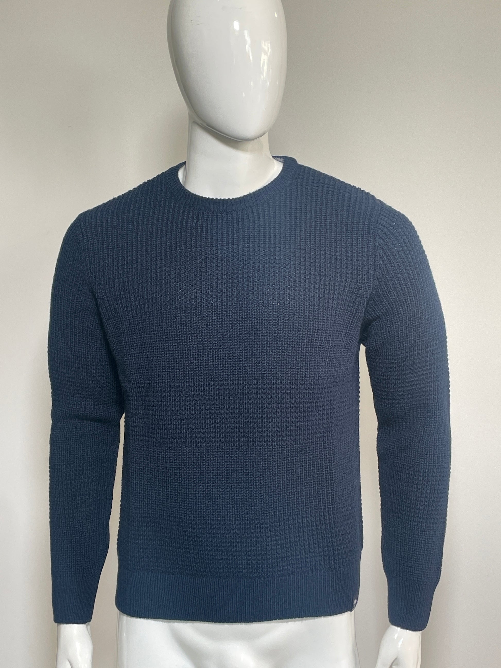Questo maglione girocollo è realizzato in morbido cotone a trama waffle, che dona un effetto tridimensionale e una sensazione di calore e comfort.