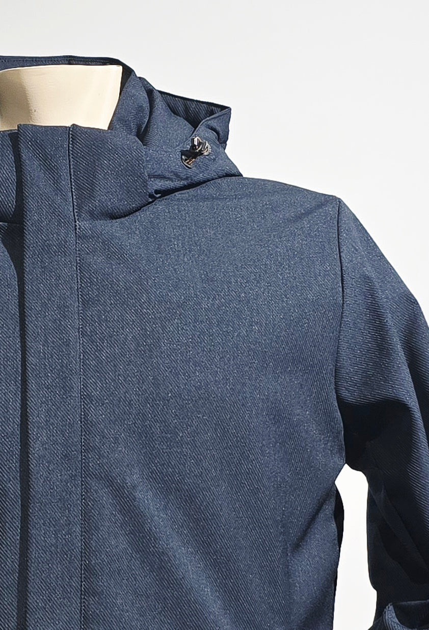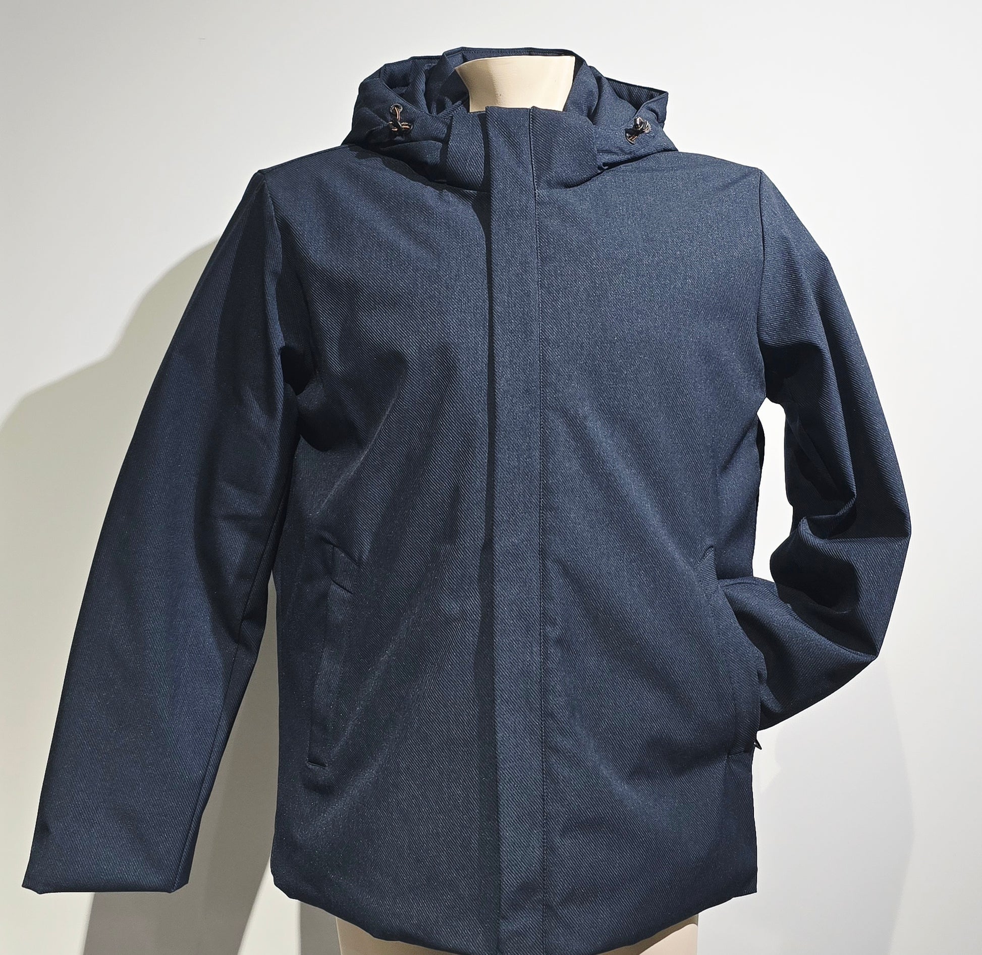 Giubbotto in tessuto tecnico idrorepellente, dal design essenziale e moderno. Chiusura frontale con zip coperta e patta antivento con bottoncini, tasche laterali oblique con chiusura a pressione e cappuccio regolabile con coulisse. Interno foderato e imbottitura leggera per garantire comfort e protezione nelle giornate fredde. Vestibilità regolare, ideale per l’uso quotidiano. sia per il lavoro e anche per il tempo libero.