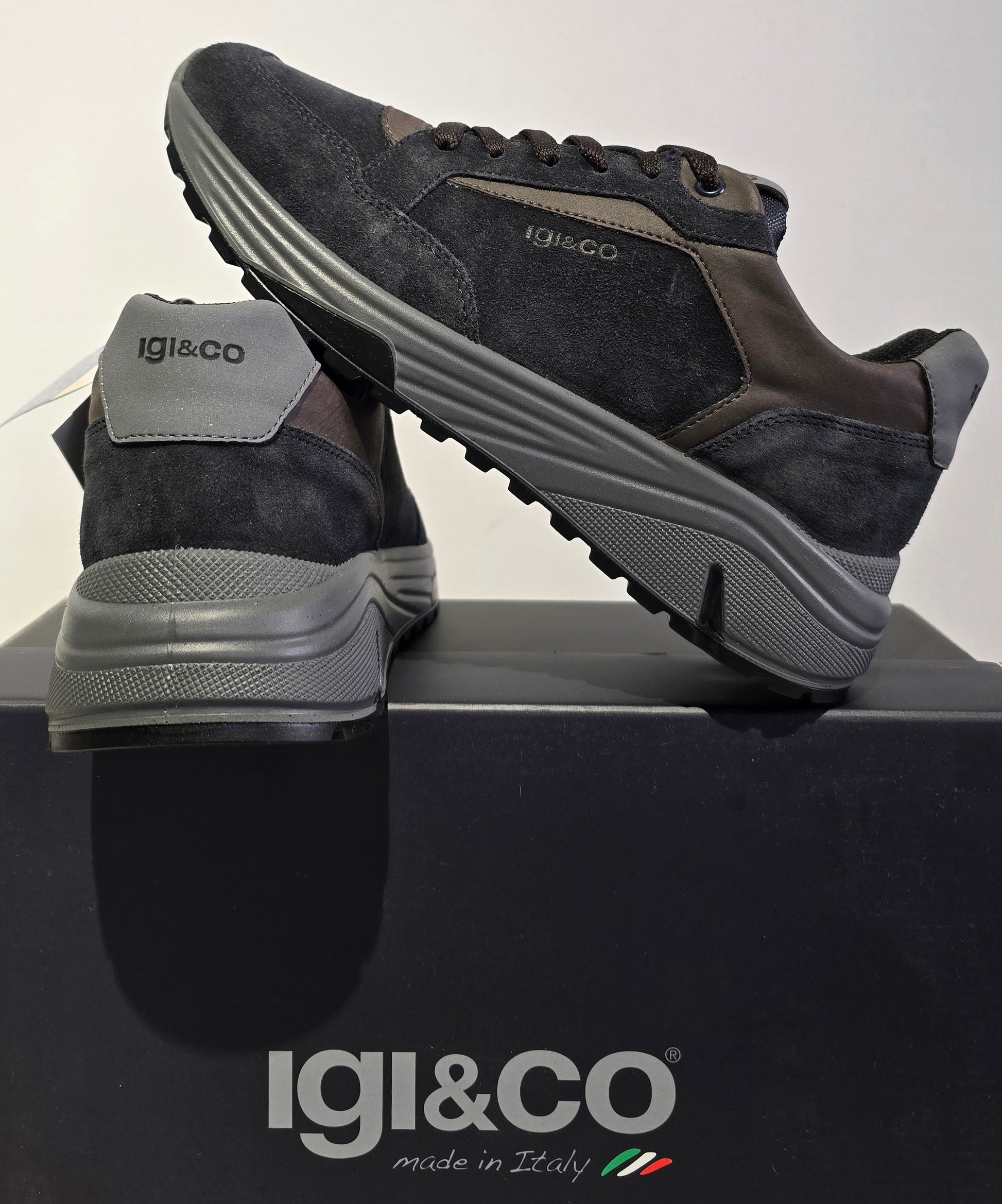 Sneakers uomo IGI&CO in camoscio e pelle color testa di moro con dettagli grigio tortora.